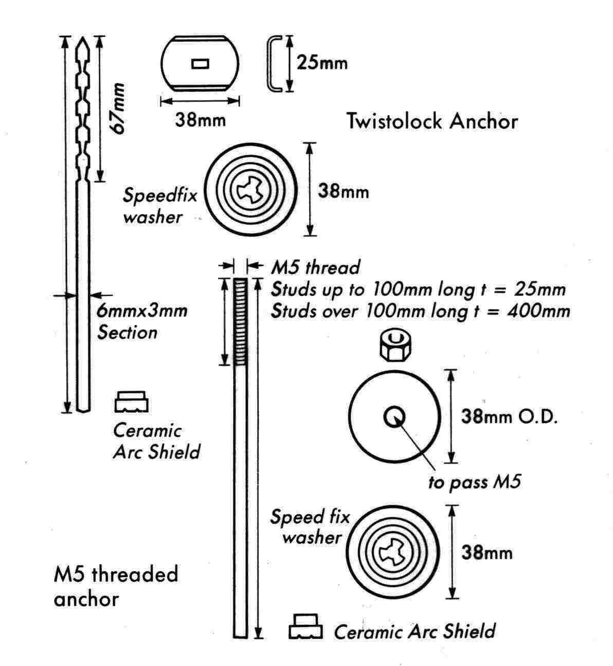 The earliest type of lining with ceramic fibre was done by laying the blanket on the wall as though it were wall-paper. Instead of using paste to hold it in place a system of pins and clips has been devised which gives good support for the blanket up to about 1100°C. The main restriction for this type of construction is the speed of gas flow over the surface and the content of abrasive dust particles. The module system resists maltreatment better than blanket. Wall-papered blanket can be laid over a stainless steel or aluminium foil membrane to reduce penetration of noxious vapours to the shell of a vessel. The ceramic fibre blanket is held in place with pins fastened to the shell by screwing or welding.